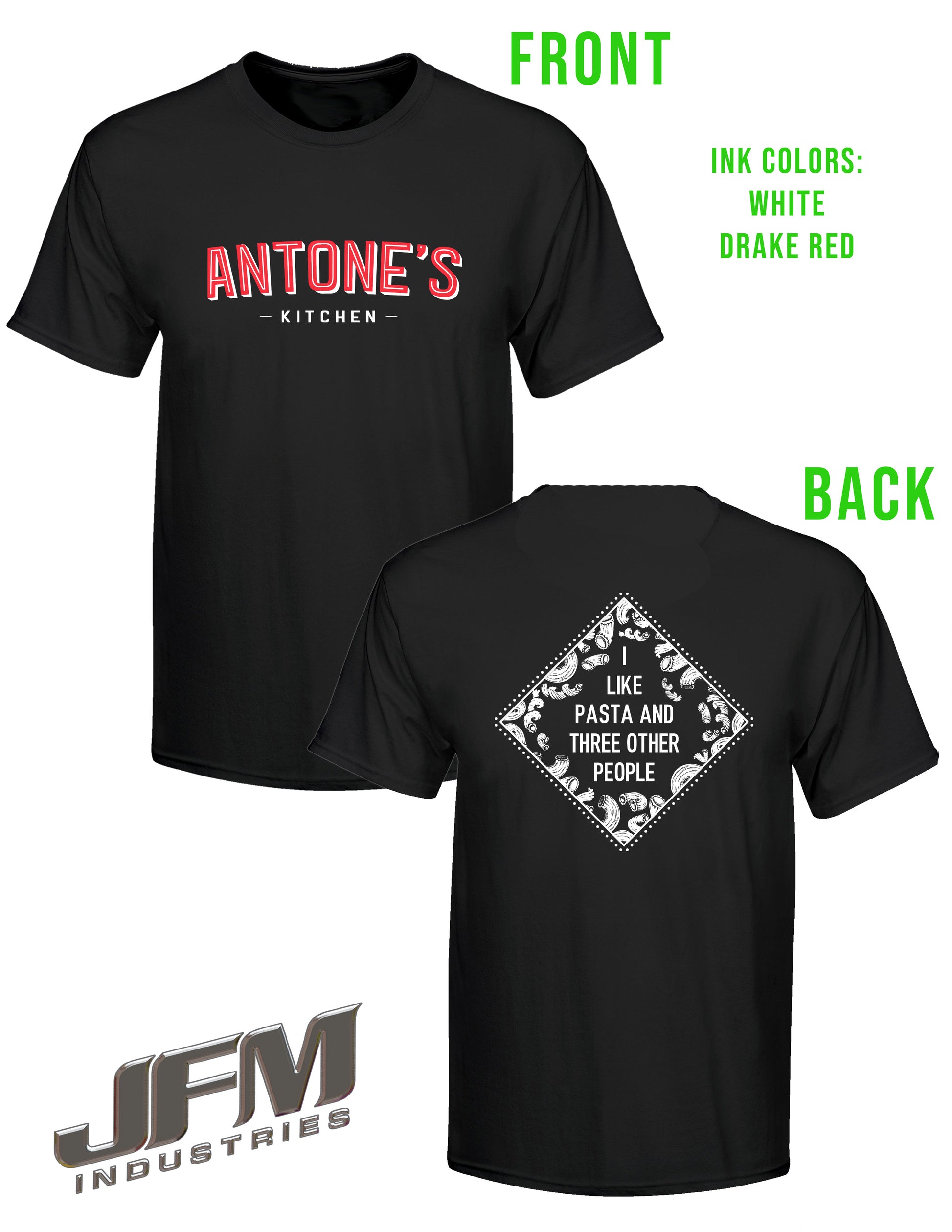 Antones T-shirt Featuring “I like pasta and three other people”
