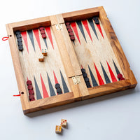 Backgammon, one of the oldest known board games, continues to captivate players with its blend of strategy and luck. Its origins trace back approximately 5,000 years to the ancient civilizations of Mesopotamia. This timeless game has evolved through various cultures and eras, each contributing unique elements to its development. The Verve Culture Backgammon Set features handmade wooden pieces and a mangowood box. Today, backgammon is enjoyed worldwide, maintaining its status as a beloved pastime that combines the ancient art of strategic planning with the unpredictability of the dice roll. Its enduring appeal lies in the game's elegant simplicity, dynamic complexity, and the rich history that Verve Culture’s backgammon set now proudly embodies. Folded Dimensions - 12'' x 6.5'' x 2.25'' Unfolded Dimensions -12'' x 13'' x 1''